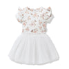 Our beloved tutu dress is now available in a stunning new floral print! This enchanting dress is crafted with care, using organic cotton and featuring five layers of the softest tulle. The beautiful ruffle sleeves add an extra touch of elegance, making it perfect for the little dancer inside!
