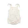 Breezy and beautifully detailed, this bubble romper is a delightful addition to your little one's summer wardrobe. Featuring a soft, gathered silhouette and crafted from GOTS certified organic cotton, it offers both comfort and freedom to move. The all-over cherry-inspired print adds a joyful pop of colour, while adjustable tie straps and ruffled, elasticated leg openings create a sweet and practical finish. With snap closures for easy changes, it’s perfect for sunny days and playful outings.