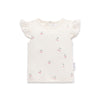 Sweet, breezy, and beautifully made, the Cherry Flutter Top is a charming addition to your little one’s wardrobe. Crafted from 100% GOTS-certified organic cotton, it features an all-over twin cherry print on a soft natural base. The ruffle cap sleeves are finished with delicate crochet lace trim, adding a soft, feminine touch to this playful design.