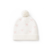Made from all natural cotton knit and featuring sweet bows and pom pom, this beanie will match any outfit while keeping tiny heads warm and snug.